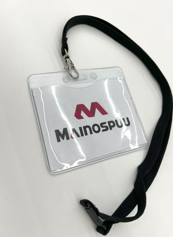 Kirkas muovitasku vaakamallisena ID- kortille tai nimilapulle.
